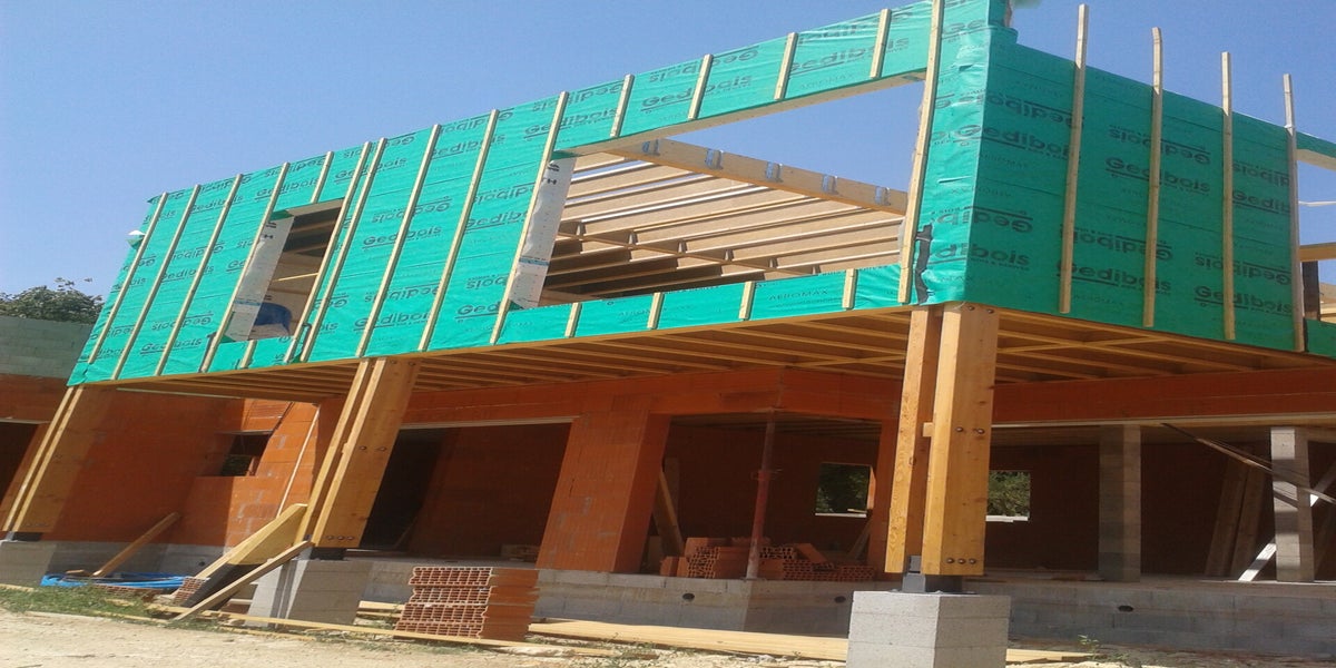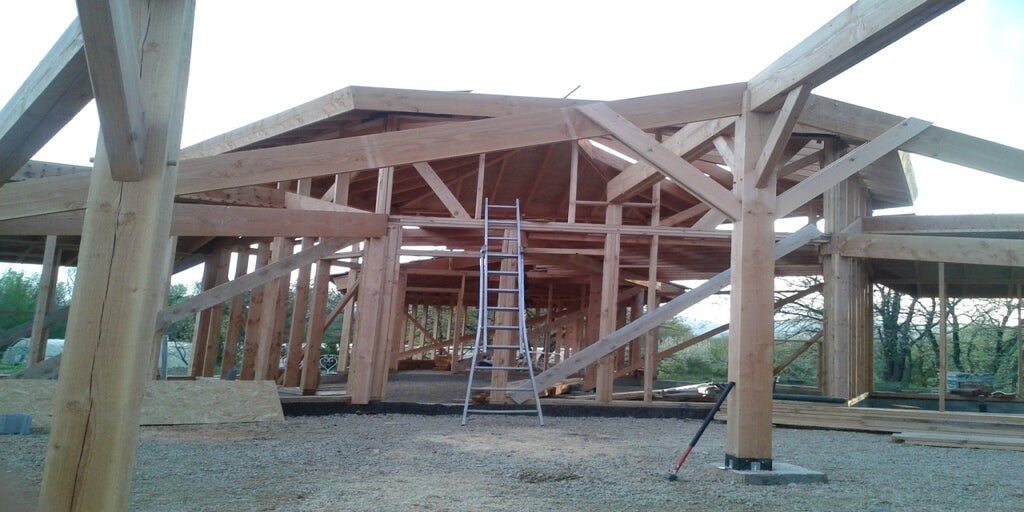 Nous avons réalisé: la totalité de la structure bois murs, planchers et toitures, toutes isolations y compris complément support d'enduits, couvertures, étanchéités et zingueries.