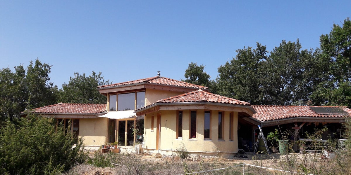 Notre première maison! Et le début d'un long partenariat avec Sophie Lossky, architecte engagée dans la recherche et l'amélioration de la construction bioclimatique et les matériaux locaux biosourcés à faible impact environnemental.